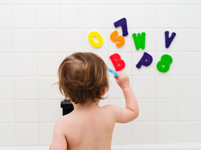 お風呂に貼るシートやグッズもたくさん出ており、子供のモチベーションも上がりやすい。湯気で曇ったタイルに書くだけでも十分学べる。