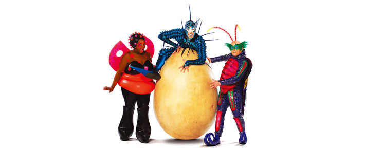舞台は草木の下で暮らす昆虫たちの世界。開演前から会場には虫の羽音がこだまし、昆虫たちが観客の目の前を闊歩する。「オーヴォ」とは、ポルトガル語で卵のこと。生命の源でもある卵を巡って物語が展開するファンタジー作品だ。3歳からの子供券も販売しており、子供連れの来場者も多く見られた。