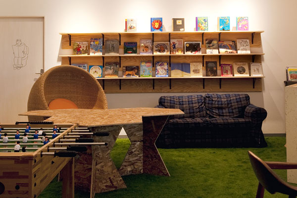 このカフェは子供を対象に英語教育を行ってきた経験を活かし、より多くの子供たちに早くから異文化交流できる機会を提供したいという思いで開設された。開放的なインテリアの店内に、約500冊の英語の絵本をはじめ、ボードゲームやフーズボールなど、五感を活用して英語を吸収できるよう考えられたあそび場が用意されている。そのように知らない人とも気軽にコミュニケーションが取れる工夫がされた店内では、外国人スタッフとはもちろん、英語環境を求めて訪れる外国籍のお客さんとふれあう機会も得られるのだ。また食事にもこだわり、心身の発育を促す滋養ある自然食を提供。子供も大人もくつろげる空間で、英語を主言語とする親子にとっても、希少な場所になる。