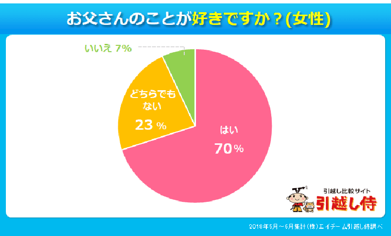 その結果、男性62%、女性70%と、意外にも娘である女性の方が”お父さんが好き”と回答していることがわかった。