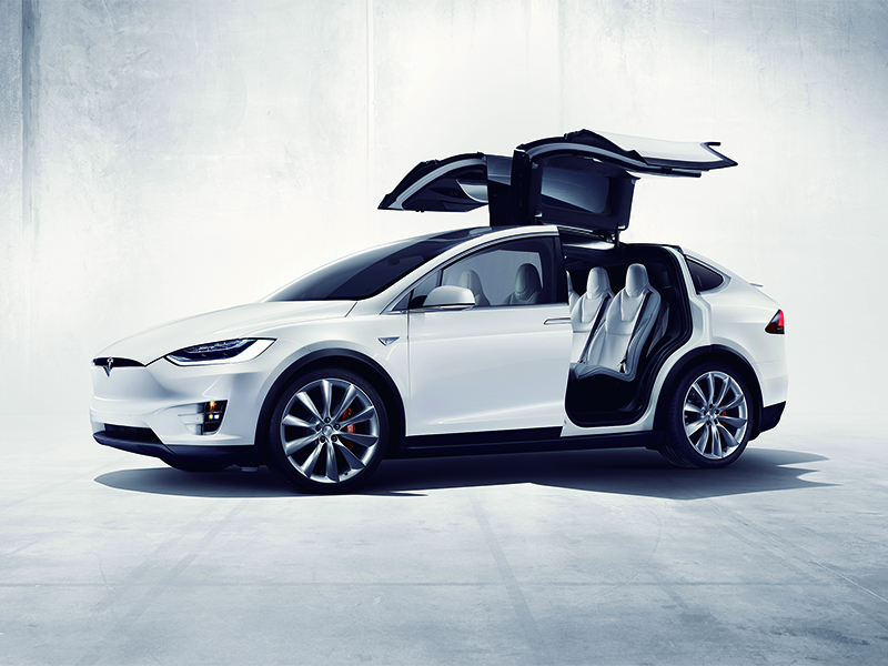 革新的なEVを生み出しているテスラ初のSUVは、羽のように上に持ち上がって開く「ファルコンウィングドア」が印象的な最大7人乗りだ。大型タッチスクリーンで操作する室内をはじめ、完全自動運転対応のハードウェアをすでに搭載済みなど、未来を先取りできる。