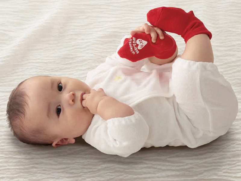 赤ちゃんの成⻑を願って開催する赤いくつ下ハイハイレース。参加するとキュートな赤いくつ下がゲットできる。