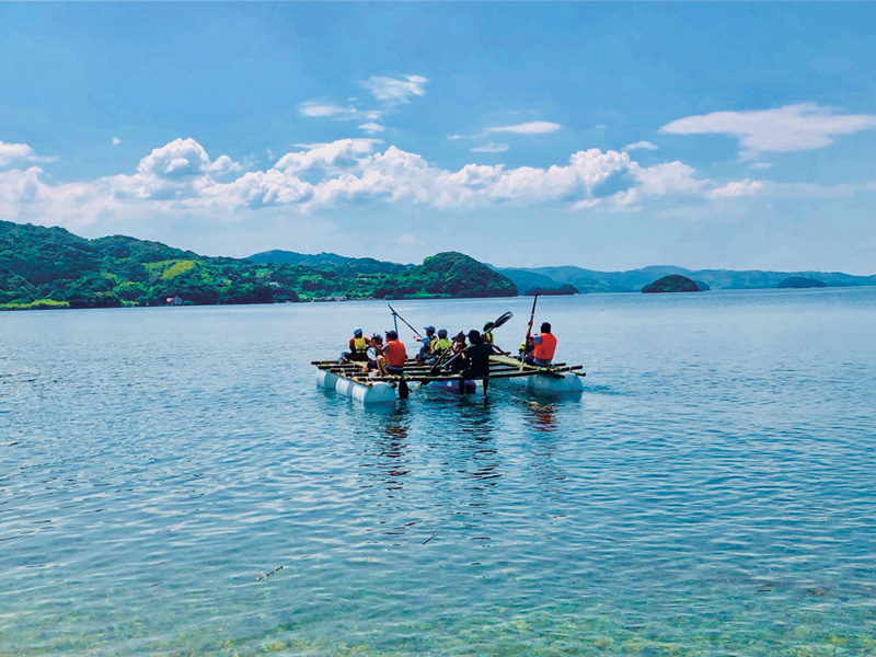 そして、いつか我が子にやらせたいのが、自分たちで作ったイカダで本土まで脱出するサバイバル体験。(もちろん、救命具を着用し事故のないようにサポートしている)。作りが悪ければバラバラになってしまうが、それも勉強だ。