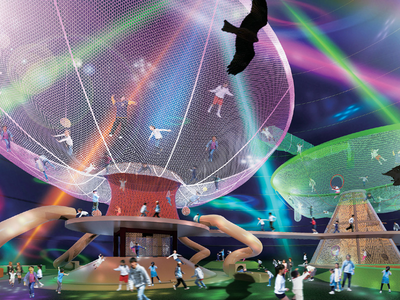東京ドーム9個分の広さを誇る「ハローウッズの森」を有するツインリンクもてぎに、国内最大面積※の屋内ネットアスレチック施設「巨大ネットの森 SUMIKA」が誕生。森の時間や季節の移り変わりの美しさ、そして生きものたちの気配といった“豊かな里山の森”の魅力を、光と音の演出によって再現。至るところにある森を感じる仕掛けの中、うさぎやリスなどの小動物になりきって、森の中を走ったり、登ったり、寝転んだりと遊び尽くせる。ネットアスレチックの楽しみを超え、屋内にいながら感覚的アウトドア体験ができるアトラクションだ。