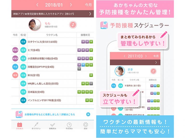 パパも把握できる!子供の予防接種を簡単管理!