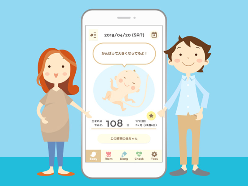 妊娠期間のママと子供とパパを繋ぐ、妊娠記録・日記アプリ。ママの妊娠週数にあわせて成長する赤ちゃんと会話で妊娠を楽しく理解でき、ママの体調記録・健診予定&記録・妊娠日記を共有できるからパパママで協力して子供を育てられる。