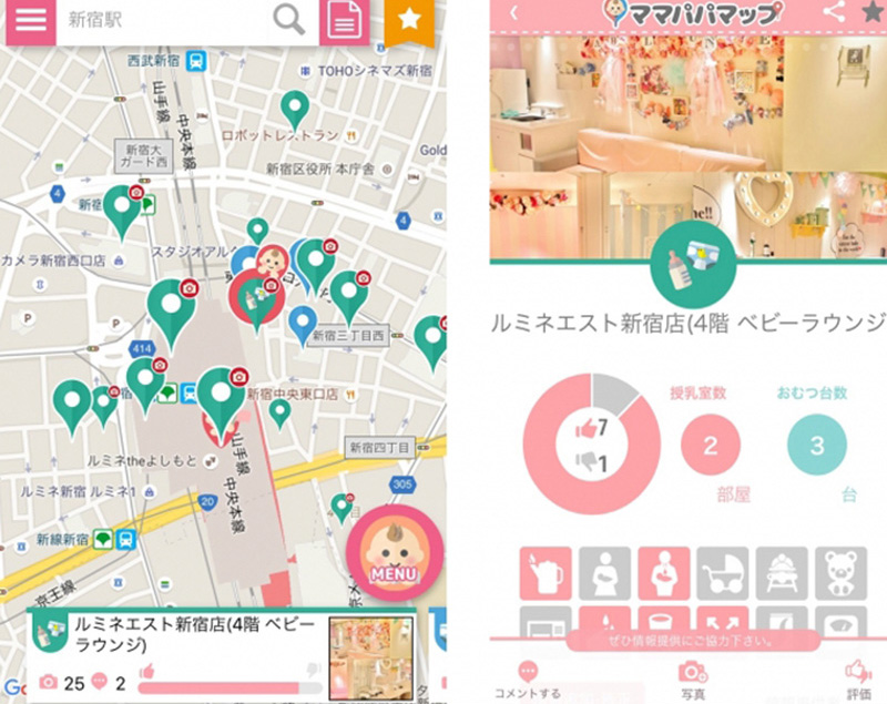 赤ちゃん連れのおでかけには難関がいっぱい。なかでも授乳室やおむつ替え台、赤ちゃん休憩室の問題は、避けて通れない。そんなときに活躍するのが、ママパパマップだ。授乳室やおむつ替え台・赤ちゃん休憩室を一発で探せる。