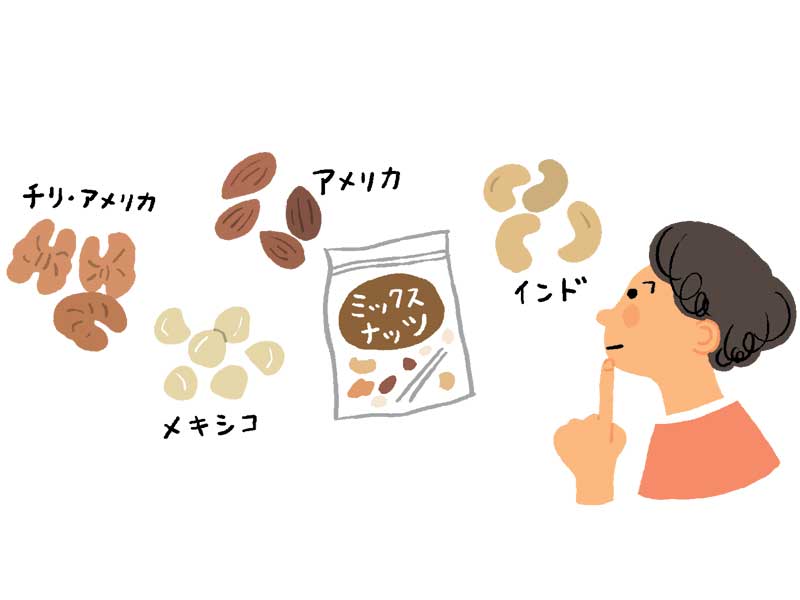 スーパーの加工食品売り場には、子供が地理に興味を持つチャンスがたくさん転がっている。たとえばミックスナッツなら、1袋の中にアメリカ産アーモンド、インド産カシューナッツ、メキシコ産ジャイアントコーンなど様々な国の名前が並ぶ。