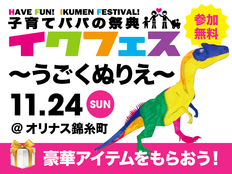 11/24(日)にオリナス錦糸町の1F広場にて、ファミリーイベント『イクフェス』が開催される。今回は「うごくぬりえ」とコラボ企画。最新のデジタルおもちゃを親子で楽しめるワークショップや豪華賞品が当たる人気コンテンツ「ガラガラ抽選会」も行われる。