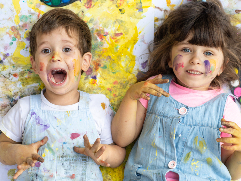 子供が手を筆代わりにお絵かきするという体験は、今までにない斬新なアイデアである。カレンダーボードに絵の具がついているのも嬉しい。