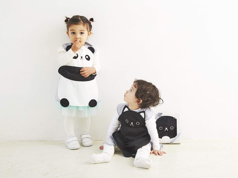 まるでぬいぐるみ!写真映えするインパクトさで思わず笑みがこぼれるロングエプロン。2018年の販売スタート時からおしゃれに敏感な親たちの話題となっている。大好きな動物をまるで抱っこしているかのようなデザインでエプロンが苦手な子供もこれなら気に入ってくれるかも!?