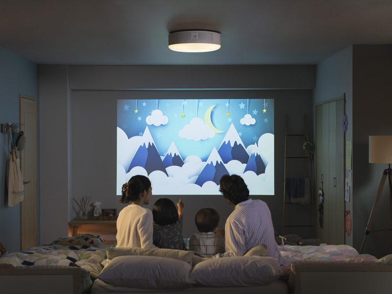 工事不要で簡単に設置可能な高機能プロジェクター付きシーリングライト「popIn Aladdin(ポップイン アラジン)」に新型モデルが登場。新機能や多彩なコンテンツを備え、家族の"おうち時間"を楽しませてくれそうだ。