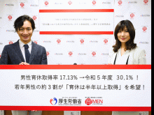 史上最大の伸び率!前年度比 約13ポイント上昇の30.1%の男性育休取得率。