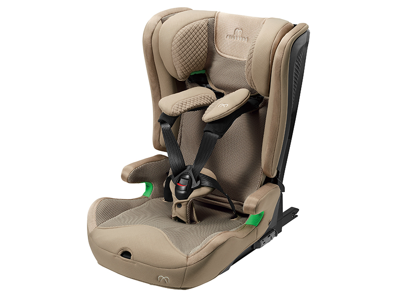 肩ベルトが跳ね上がり乗せ降ろしがラクになる「ジャンピングハーネス」を搭載したエールベベの最新モデル。新安全基準R129適合で前後と側面の衝撃から守ってくれる。銀イオンの力で除菌をする生地「Agピュア」をカバーの一部に採用。