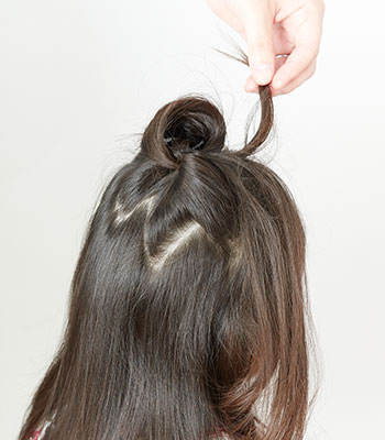 6.穴から出した毛先を前にひっぱります。