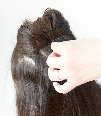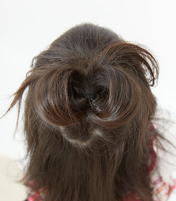 8.前から持ってきた毛先を後ろでピンで留めて、できあがり!