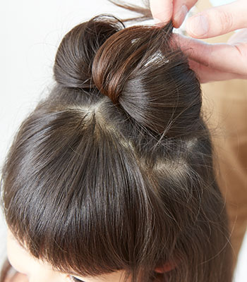 I1.上の方の髪の毛を結びます。