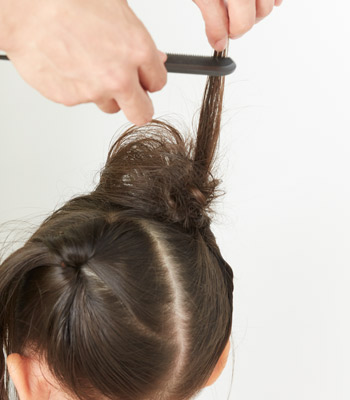 1.高い位置でふたつにしばります。