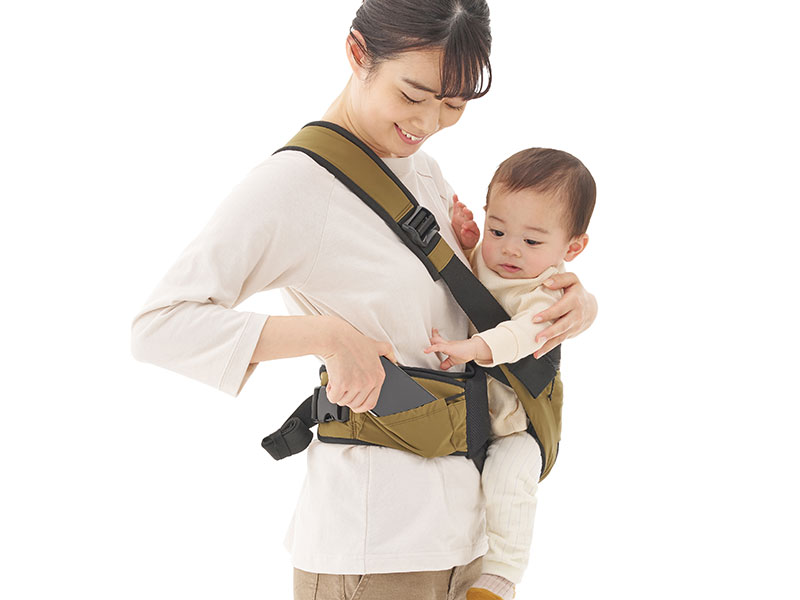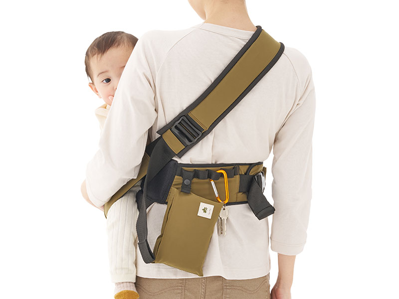 腰抱っこと対面抱っこの抱き方ができ、足元に注意が必要なアウトドアシーンに最適。洗濯機で丸洗い可能なうえ、ポーチ型に収納すると持ち運びも便利で日常使いにも◎。授乳時などに活躍するマルチケープも付属。SG基準認証製品。