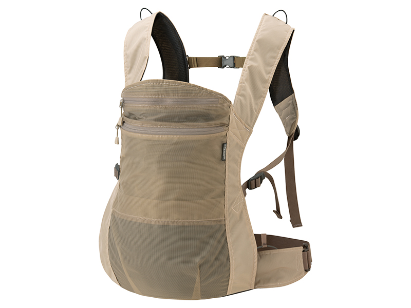 軽量・コンパクトに収納でき、携行に便利なベビーキャリア。「抱っこ」と「おんぶ」の2通りの使い方ができ、荷重をウエストで支える疲れにくい設計。アウトドラブランドらしく、通気性に優れる素材を使用し、ハイキングやキャンプシーンに最適。