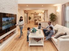 1つの空間で家族が別々のことを自由に楽しみながらも、家族の存在を近くに感じられる。そんなリビングが東急ホームズ・ミルクリークにはある。リビングで過ごす時間を充実させる "リビ充家族"の理想形がここに。