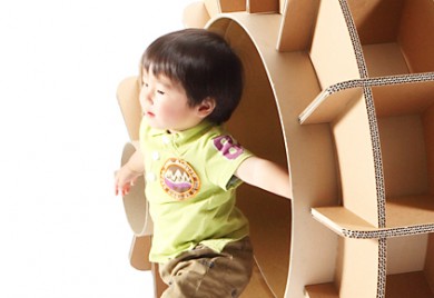 強化ダンボールで製作された “わくわく”遊具「つちのこ」